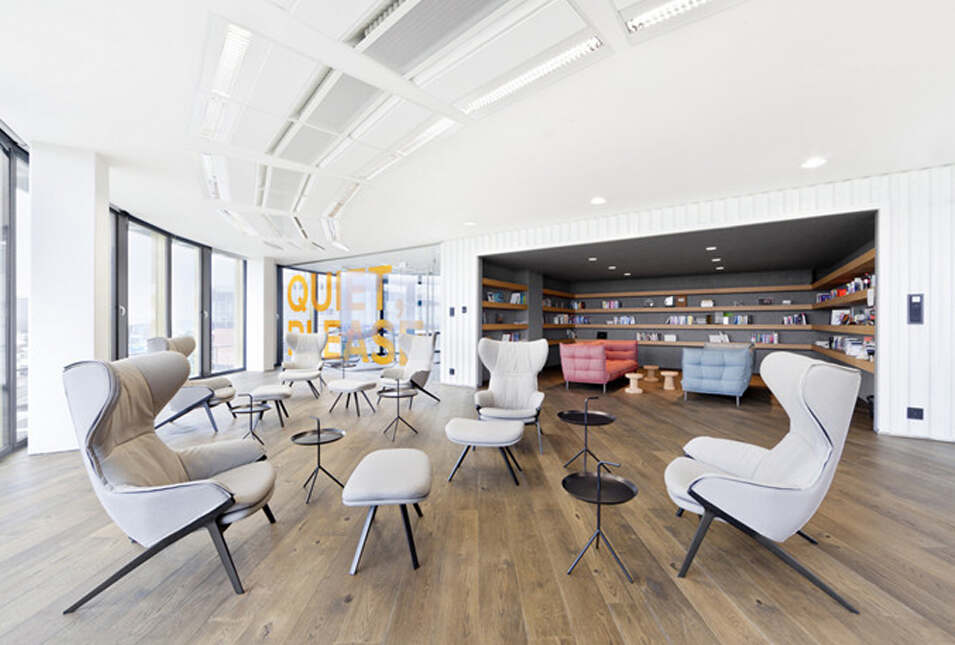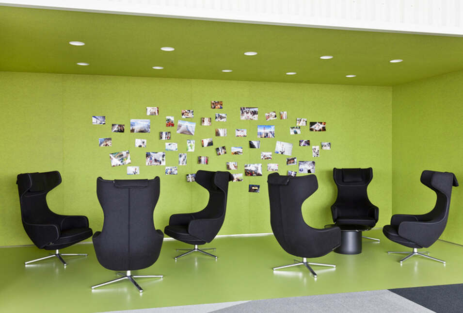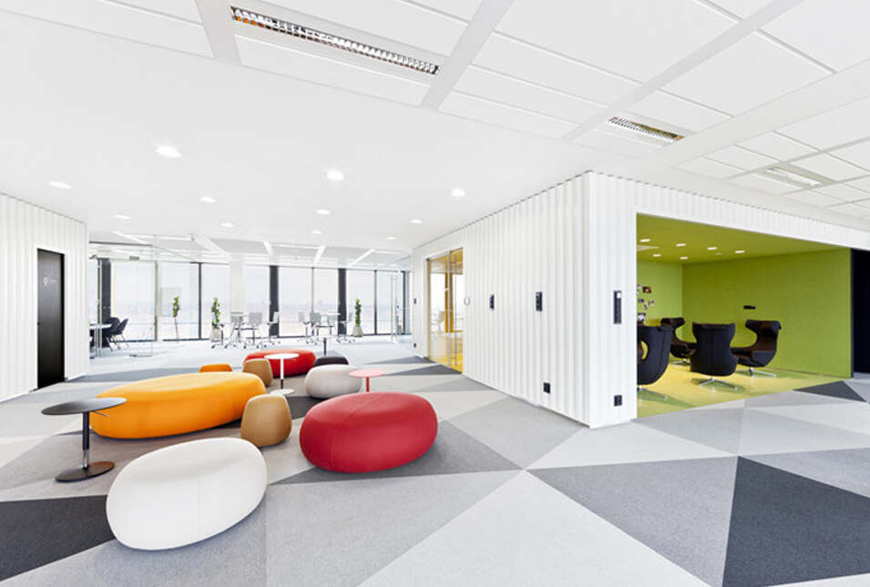 設(shè)計介紹:好玩的辦公室,體育館、娛樂室、游戲室、創(chuàng)造放松的空間,石頭型的多彩座椅,更顯趣味性,粉色的沙發(fā)是休息的法寶,并且設(shè)置的有圖書館,供人們休息室查閱,軟裝的座椅舒適,實用,還有用餐區(qū),木質(zhì)的座椅更加安全,健康,照片墻以綠色為背景顯得清晰明了,人性化,設(shè)計了體育館,員工們健身娛樂。