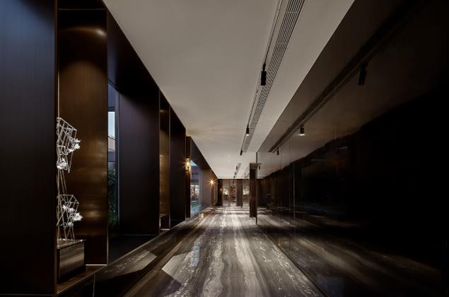 如某公司辦公室裝修:前臺大面積使用的勞倫金,奠定了整個空間的基調(diào),在沉穩(wěn)克制的質(zhì)感中,隱透出金的尊貴;經(jīng)過特殊處理的不銹鋼面的接待臺,讓空間理性而內(nèi)斂;浪花石則打破了這種寧靜,增添了幾許動感。設(shè)置了一個“口”形的環(huán)繞動線,以電梯間和接待區(qū)域為中線,東西分別分布董事長辦公接待區(qū)域和員工辦公與功能區(qū)域,在空間上保障了組織溝通以及業(yè)務(wù)功能的滿足。辦公空間的軟裝設(shè)計是現(xiàn)代與復(fù)古、樸質(zhì)與精巧、藝術(shù)與自然之間的對話與順應(yīng)。橙色、木色、淺灰色作為家具的主色調(diào),以溫暖的氣息中和硬裝的冷峻,帶來空間的溫度。