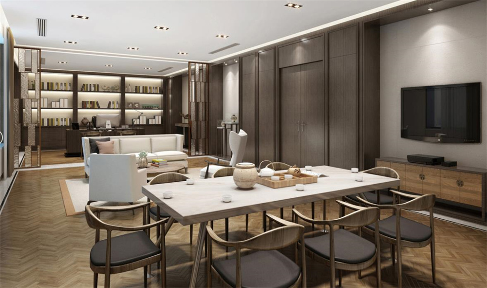 3、新中式董事長辦公室設(shè)計(jì)效果圖