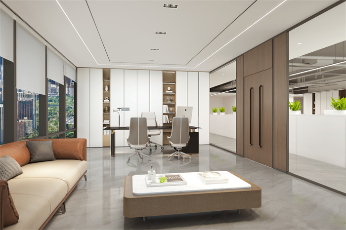 3、最后門窗大致分為:鋼化門、純實木門、實木免漆門、復合實木門等。一般辦公室鋼化門常指鋼化玻璃門,使用的居多。純實木門質量更好質感最強,但是價格較貴,實木免漆門使用較多,但是光澤度不高容易起泡。復合實木門結構與實木免漆門相似但比實木免漆門還更為經濟。綜上所述,對于辦公室裝修的門窗選擇應該因設計和需求制宜,在采用之前細心選擇才能夠更好的表達空間效果。