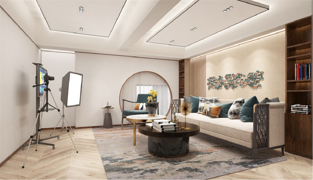 第三,很多有一定人生閱歷的業(yè)主喜歡的色調(diào),新中式主色調(diào)偏重色,紅色表示富貴,青色表示和平,但通常硬裝前最好先跟業(yè)主溝通軟裝的主色調(diào),再進(jìn)行裝修,以免后期裝修完畢,整個空間全是一種色調(diào),造成壓抑或者空洞。因?yàn)榧揖呋蛘哂惭b的顏色會偏深,會顯得空間偏暗,所以要合理利用光線,來改善室內(nèi)的采光。但是要注意光線不要太強(qiáng)烈,否則會使人視覺疲勞,產(chǎn)生煩躁不安的情緒。