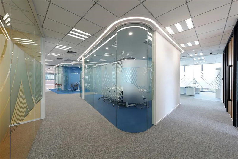 辦公室裝修采用玻璃隔斷。玻璃本身具有極佳的透明性和通透性,給人一種無法褪去的溫暖和明亮的感覺。它提高了空間的視覺范圍,似乎是間歇性的。即使在空間不夠?qū)挸ǖ霓k公室工作,也不會(huì)感到壓抑。用玻璃隔斷裝飾辦公室,可以讓整個(gè)辦公空間通透。