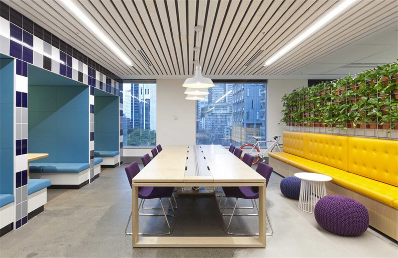 開放區(qū)域。在一個開放式的辦公區(qū),空間視覺相當(dāng)開朗,這樣的設(shè)計比較時尚,也比較適合年輕人。它不僅可以活躍氣氛,還可以促進員工之間的內(nèi)部交流,增加員工的流動性和舒適度。另外,在設(shè)計的時候??梢赃m當(dāng)收縮,用一些幾何線條或者裝飾元素,讓辦公室感覺更好。