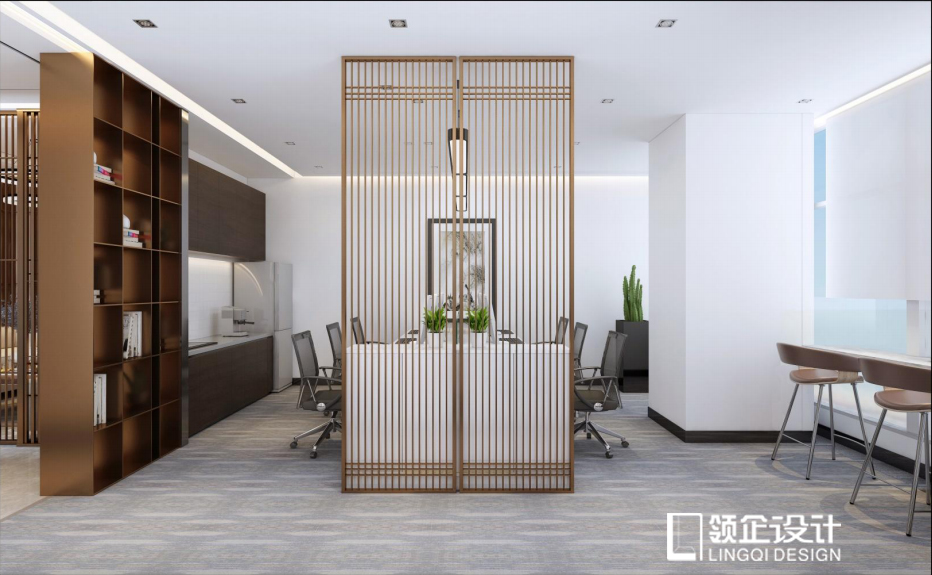 竹、藤、麻繩、木條做成的隔斷,稀疏的線條,讓光線在室內(nèi)自由流通,不會有實心墻帶來的壓抑感。這種隔斷在材質(zhì)上追求自然,但空間效果卻令人印象深刻。水平線使室內(nèi)空間在視覺上橫向延伸。仿竹簾的隔斷給人軟硬結(jié)合的感覺。一般來說,自然風(fēng)格的辦公室設(shè)計都會采用這種類型的隔斷,在空間上營造出獨(dú)特的舒適氛圍。隔斷是辦公空間裝修布局中的一個設(shè)計理念。分區(qū)是一種在不分割空間的情況下限制空間的手段。它不僅具有劃分、美化、協(xié)調(diào)空間的作用,還能幫助我們解決空間中的許多問題。在辦公空間的設(shè)計上,領(lǐng)企裝飾堅持從細(xì)節(jié)入手,從本質(zhì)上力求完美,做好辦公室裝修的每一步。